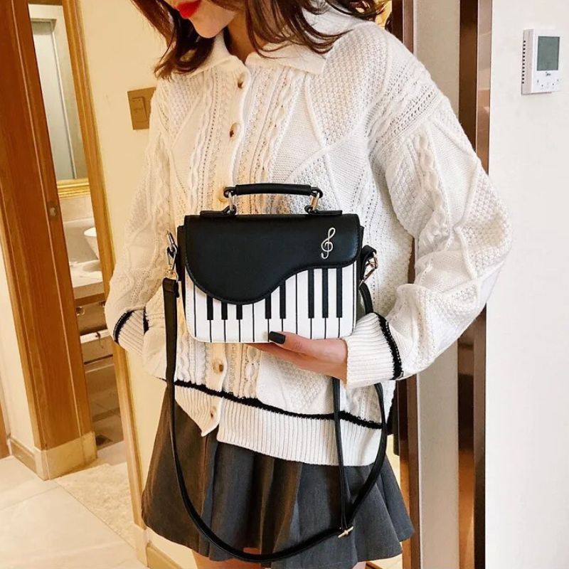 This accessory harmonizes fashion and music, carry your essentials in style with this exquisite handbag inspired by the timeless beauty of piano design, embodying sophistication and creativity in every note.